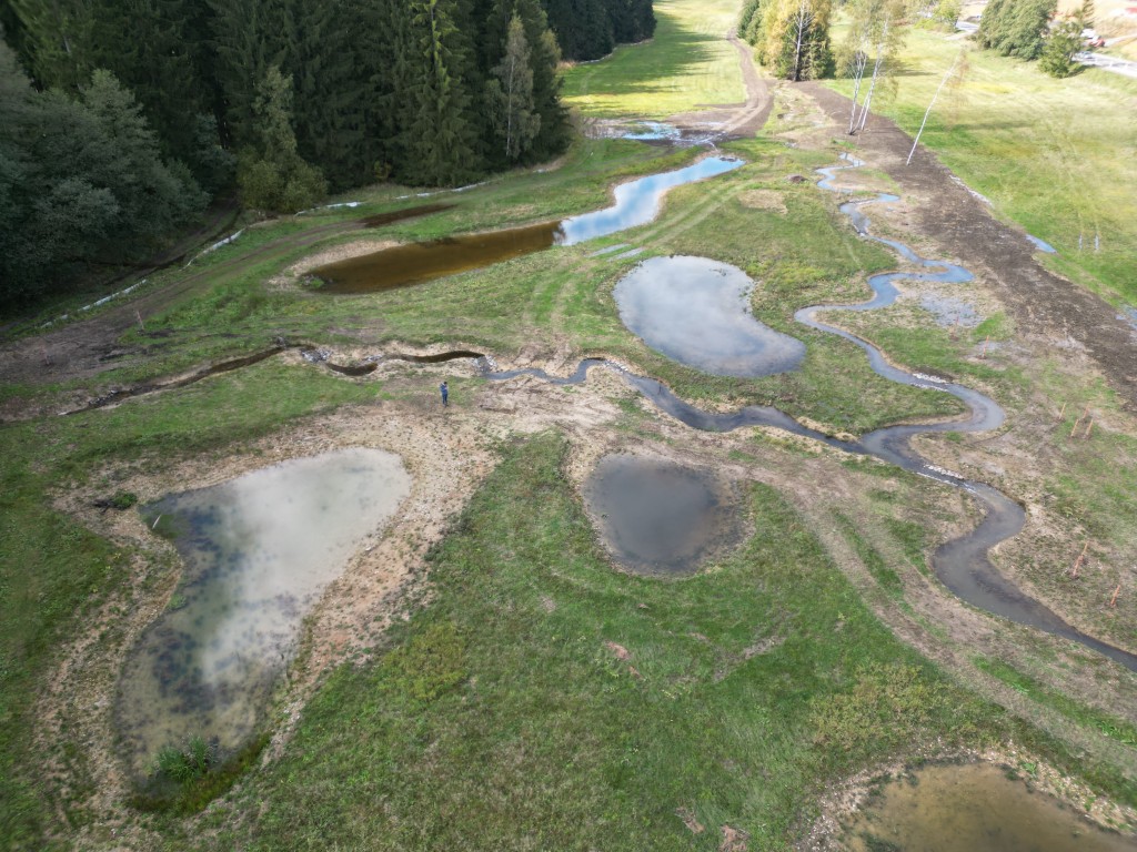 „Původní koryto jsme nechali zasypat výkopovou zeminou. Zachovalo se jen v místech s cenným původním břehovým porostem. Tam je teď osm nových prahů a do toku jsme zakomponovali i mrtvé dřevo. Slouží jako úkryt živočichů, ale taky zpomaluje proudění vody,“ říká Zbyněk Morkus, vedoucí Správy toků pro oblast povodí Labe z Lesů České republiky.